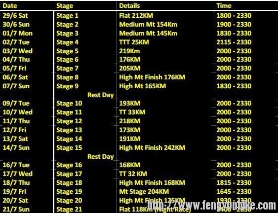 最后附上由單車誌转载 Eurosport提供 百届环法转播时间表(时刻为GMT+8时间)