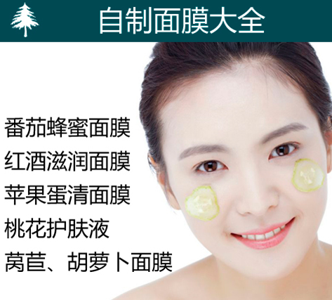 自制面膜大全 红润有气色的脸蛋真的很重要,气色回归,魅力就自然回归了。这里给大家介绍一些简单方便的DIY面膜,让你在在自然环境的包围中,轻松拥有好的气色。 莴苣、胡萝卜面膜: 莴苣叶能匀色,胡萝卜的胡萝卜素有助皮肤细胞再生,也是紫外线的防护罩。1. 混合1杯陶粉末 (clay powder ),1/4杯玉米粉,1汤匙燕麦片,1汤匙干奶粉和2滴精油。2. 1汤匙1的混合物,加入1汤匙切碎的红萝卜或莴苣(或两者),敷脸15-20分后用温水洗净。 番茄蜂蜜面膜: 这个美白配方可同时作脸及手部美白。特别是暗疮皮肤,能有效去油腻,防止感染,使皮肤白皙细致。准备番茄半个、蜂蜜适量。将番茄搅拌成蕃茄汁后加入适量蜂蜜搅至糊状。均匀涂于脸或手部,待约15分钟洗去。建议每星期做1~2次。 红酒滋润面膜: 材料:酵母粉 2 茶匙 蛋黄 1 个 红葡萄酒 1 茶匙 制作方法:将材料混合搅拌均匀。将调制好的面膜敷于脸部(避开眼部周围)及颈部 15 分钟,再用温水冲洗干净,每天都可使用。 功效:滋润肌肤,使肌肤柔软细致、红润有光泽。 苹果蛋清面膜: 材料:苹果 蛋清 鲜奶适量 制法:将苹果去皮,切成块或捣泥,然后涂于脸部,如果是干性,过敏性皮肤,可加入适量鲜奶或植物油,而油性皮肤可以加入一些蛋清,15~20分钟后用热毛巾洗干净即可。隔几天一次,一个疗程为20天。 功效:具有使皮肤细滑,滋润,白腻的作用,还可以消除皮肤暗疮,雀斑,黑斑等症状。 桃花护肤液: 桃花是最好的养颜妙品,内含丰富的山奈酚和香豆精。将新开的花朵浸入白醋中或低度纯粮酒内,静置,液色微红后即成。洗脸后,取少许甘油与之相揉擦脸。用之洗面亦可,内服尤佳,可延缓衰老,使人面若桃花,增添娇色。