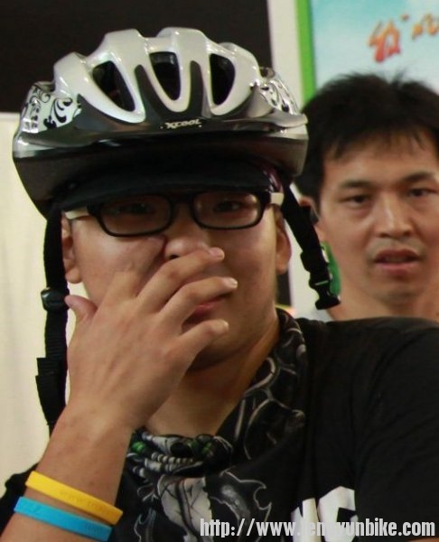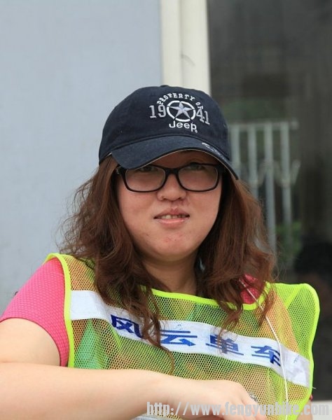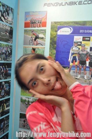 风云ID:玻璃狮子, 我们称呼他首席,6月份风云作业评比冠军得主。码字是她强项,骑车是她爱好,必杀技太多,就不一一暴露了。听说我这里需要志愿者,首席的支持自然是不言自明。不仅带来了她自己,还招呼着家里的爸爸妈妈一家人都来现场助威。一大早骑车来到了展会,自动请缨到组织最需要的地方去,最需要的地方通常都是最累的地方,当我们在展馆里吹着徐徐清风时,她却站在炎炎烈日下为每一个奔波而来的骑友送上敲门砖:展会的门票发放只能站在展馆门口,等待一个个前来的骑友,递出一张张门票,当我想起为她送上一瓶水的时候,手台里传来她一阵阵欢呼,亲爱的,你是渴坏了吧,这活的辛苦,可见一斑。