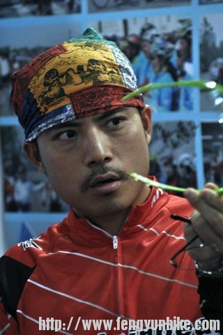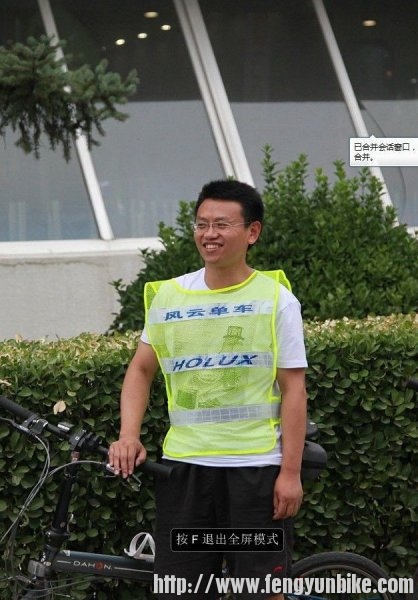 风云ID:浔阳,一个刚刚注册风云没多久的新菜鸟。二饼子此处又一次要感到自卑了:两字就认识一半,内牛满面的独行说:我也是。说话的时候,浔阳是个腼腆的小伙儿。我说起让他来当志愿者,他说我谁都不认识,去了就让我干不用认识也能干的活儿。13号那天,风云人来展会的不下两百人(55555我光雪糕就发出去一百二十个),骑车前来的车友十之八九,那一天我们都记得火爆的场面,同样火爆的是外面的太阳,那叫一个晒那叫一个热啊,浔阳小盆友就这样在炙热中为我们守候着那数十辆自行车,浔阳说:这个责任太艰巨了,车一辆比一辆贵,我还都不认识这些主人,就怕不良分子冒领错认——没办法就强制性记忆,55555要是有便利贴就好了,我挨个儿给贴条,主人呢手里也拿一个条,两条一对,车你骑走……展馆里的亲们有雪糕吃,浔阳只有我一早拿过去的几瓶绿茶喝,午饭时候国爷去换了他来吃饭,浔阳笑一笑,吃完饭又立刻走上看车岗位——这样的精神,难怪独行说:我代表风云官方表示慰问,的确要好好慰问。还有同样的看车人:风云ID:醉林7闲,一个连照片都没来得及留下的我们志愿者。