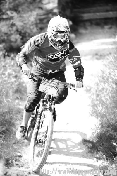 其实它们说的都没有错。速降从不在平整的路上骑行,而是选择的极度不平整的山路或林道,从上面快速俯冲下来,因为在平整的赛道上骑,你根本就找不到那种感觉。或许正是是因为这样,DH在国内还算是一个比较小众化,才不被大多数人所理解或认识吧!但也有很多人认为山地速降是一项整天和陡坡岩石打交道动不动就掉下山或是摔飞十几米,摔车受伤更是家常便饭。但其实也没那么严重,因为训练、比赛都要全副武装:带护嘴的半全盔、风镜、全身护甲、护胸、护背、护肩、护肘、护胯、护大腿、护膝、护迎面骨,身着它们即便是摔车时也很难受重伤,而且速降车是山地车里最重型的,它稳定性高、结实耐用、抗冲击,正常情况下整车重量可达18公斤。前叉行程200毫米以上,车架避震最大行程可达254毫米,骑着它至少从二层楼上飞下来是不会有问题的,驰骋在山路上如履平地。对!还有那一副速降油压刹车,四活塞八寸大碟,能使你在飞速下山进入弯道、乱石区的瞬间减速,把车速控制在安全范围内,保证骑行的安全。所以必须纠正一种观点,山地车速降不是高危运动,而是一项胆大心细的运动。速降,不是比谁更胆大无畏,而是比技术,是在你拥有的技术范围内寻求突破。面对陡坡、岩石,不比谁勇敢,是比谁能运用自身的控车技术达到最快、最完美。速降,其实很简单,从A点到B点,最快、最简单、最直接。难怪了解它的人都说它是世界上最美的运动之一。