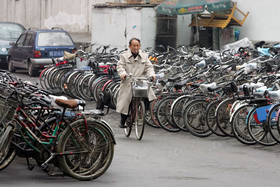 2007年3月1日,中国当局宣布开启一个长达5个月的打击盗窃自行车专项行动。市政府希望建立一个自行车管理体系,为每辆自行车匹配“身份证”。在当时,全中国每年大约有上百万量自行车丢失,一位市民表示现在不会再买自行车,也许今天买明天就被丢。图为:一个临时存车处,监管力度松懈。