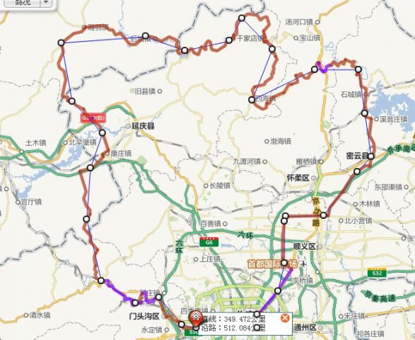 ◆ 关键路线:首钢东门-大村-镇边城-大海陀-雕鹗-白河堡水库-百里画廊-四海-琉璃庙-密云水库西岸-密云县城-三元桥