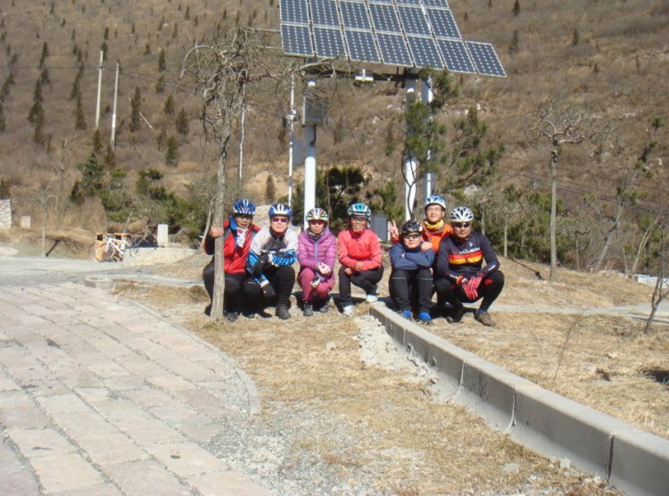 休息片刻,一路“缓上”,两位女将果然厉害,和肯特、benben288、理想往前,我和西部骑士慢悠悠在后,让他们骑的快的到垭口吹风去,嘿嘿。没想到他们聪明的很,在没到垭口的一个阳坡地就下来晒太阳等我们了。只能大家一起去垭口吹风合影了。