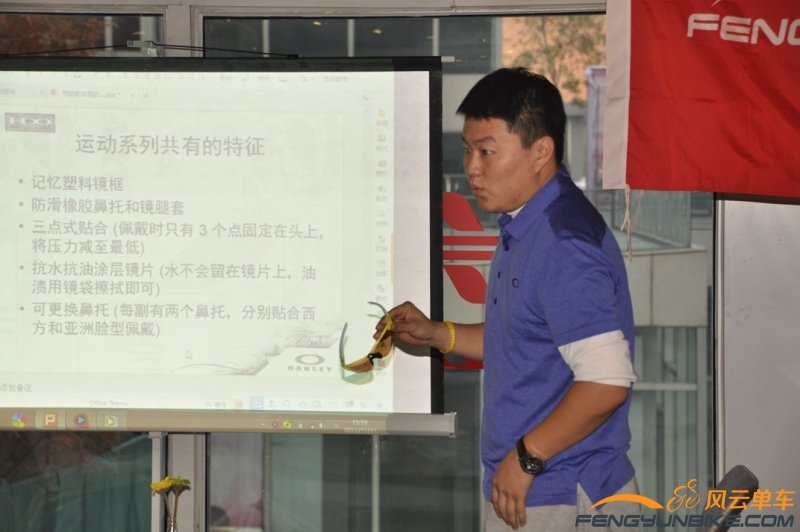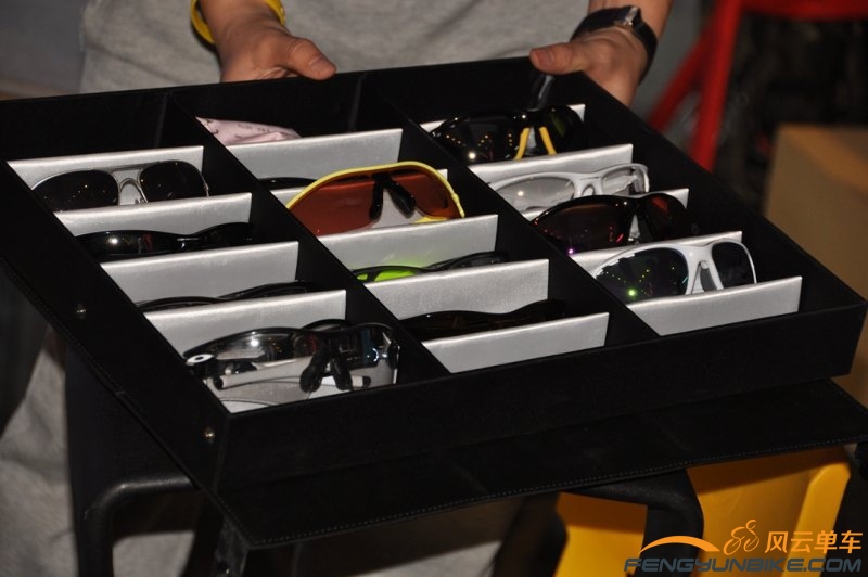 早早就准备好等待车友们的还有OAKLEY北京帅哥,两点钟不到,就连接好电脑投影仪,一遍一遍地调试,带来的三箱眼镜展示也一个个擦拭检查,排排放好等待车友们试戴品鉴。