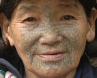 纹面是一件极痛苦的事,一般是用一根荆棘刺出图案,用西南桦制成的染料着色。脸上血管、神经丰富,要红肿、剧痛3-5天,所纹图案终生不退。