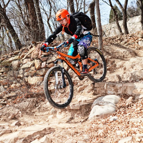 大家集合完毕,照样果园上山。一路上我们飞快的骑着,骑着,恭喜影子成功骑下大石头,那根果园特有的树根不知被谁给砍了,少了一丝趣味。 之后一下就到了梅园平台。小龙和影子飞大台阶?实在想不出用什么词来描述,当然也有飞小台阶的,实在太小儿科不值得一提。 之后水泥上山。一群软尾骑在山间小路上,或慢,或快,或推…… 到达茶棚,休息吃饭,玩乐。之后迎面坡。由于dfh发了航拍帖子,今天的迎面坡热闹非凡,顶上完全被人车给占领了!