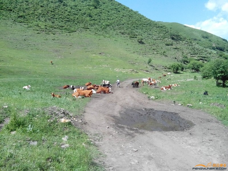 走了五公里,坡坡更陡了,骑不动咱就推,时不时有越野车轰鸣而过。
