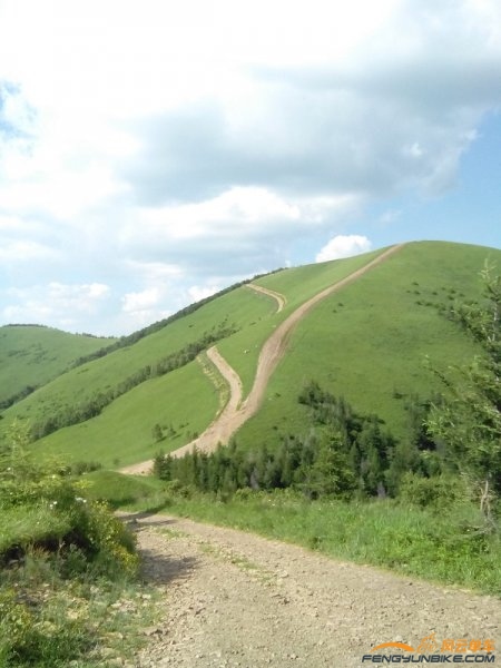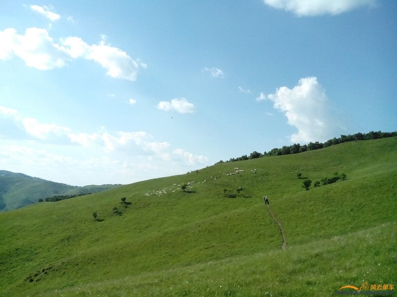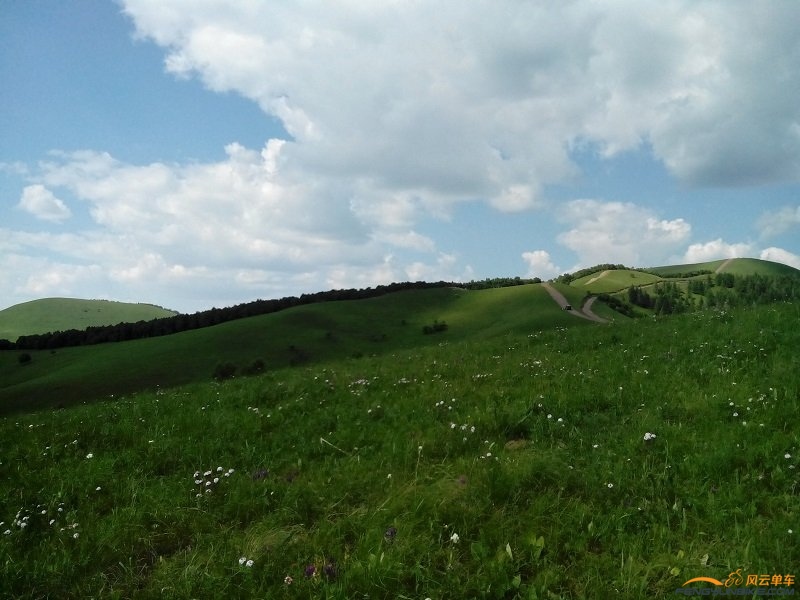 推过两个大弯,山顶的风景跃入眼中,一片高山草甸风光,远处就是好汉坡了。