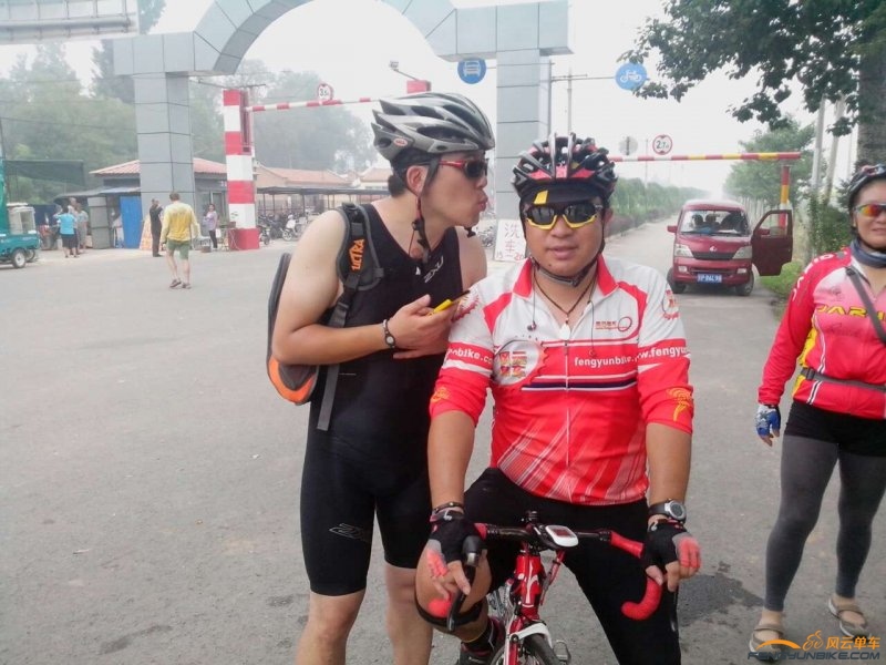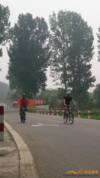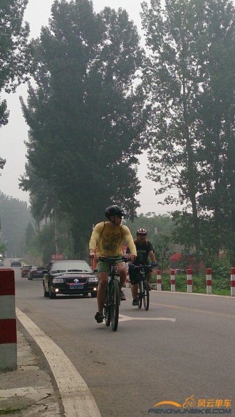从三元桥拐上了京顺路,本来想终于可以拉速度了,当到35km/h时,怎奈连续的雾霾天,加上闷热潮湿的空气,很多车友跟不上队,所以只能适当的降速了{:soso_e149:}{:soso_e149:}{:soso_e149:}。到了孙河地界时,堵车堵得一塌糊涂,连自行车道上都堵满了汽车,大家只能选择合适的车空当,钻行于车流中。