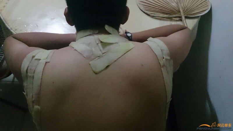 许久不骑,轻微的晒伤,老婆帮忙削西瓜皮,敷晒伤处,这个办法非常有效!!!