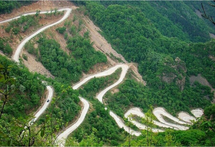 从玻璃台前往东指壶的路弯弯曲曲,逶迤盘旋,煞是壮观。让人想起1941年抗战时期连接中国云南和缅甸的“滇缅公路”,真是有过之而无不及,只是少了炮火连天。