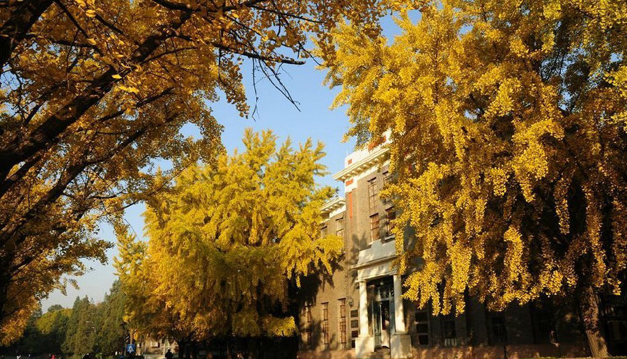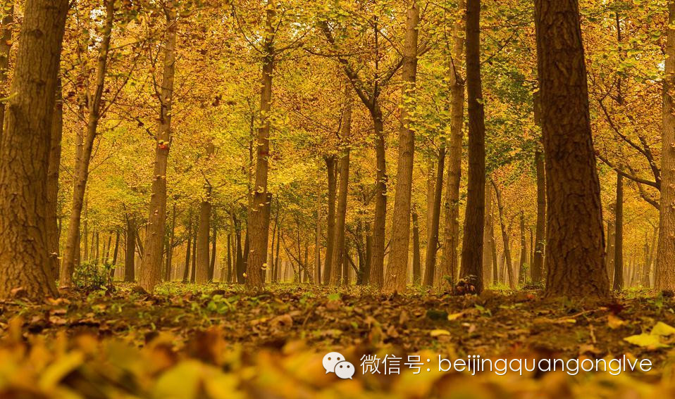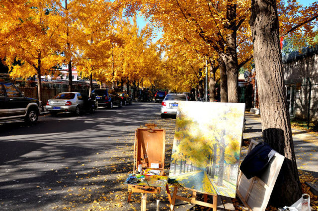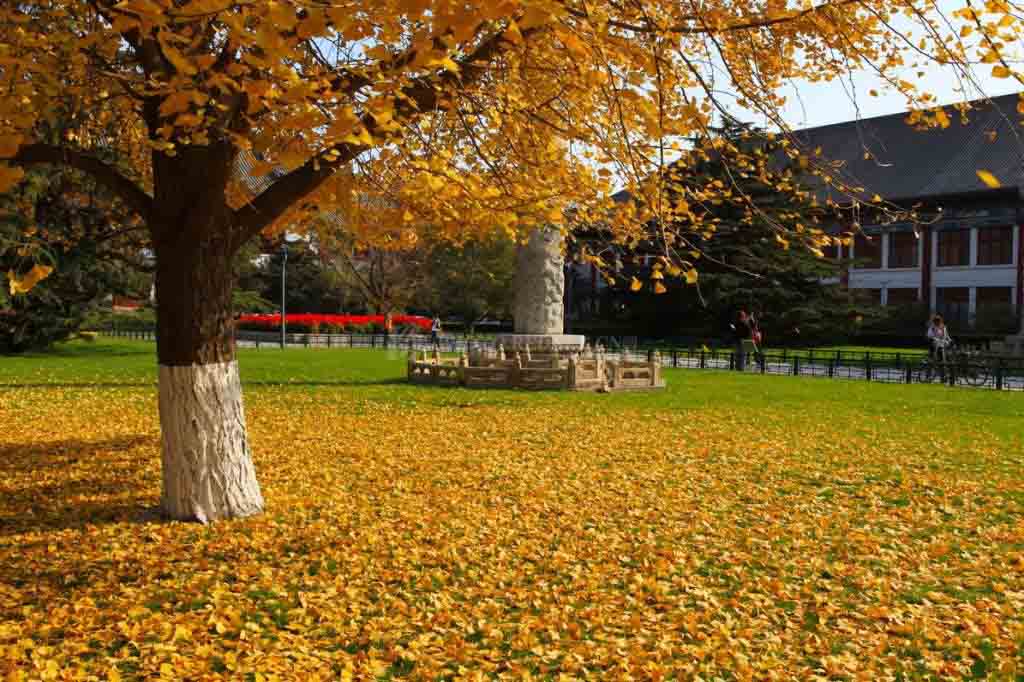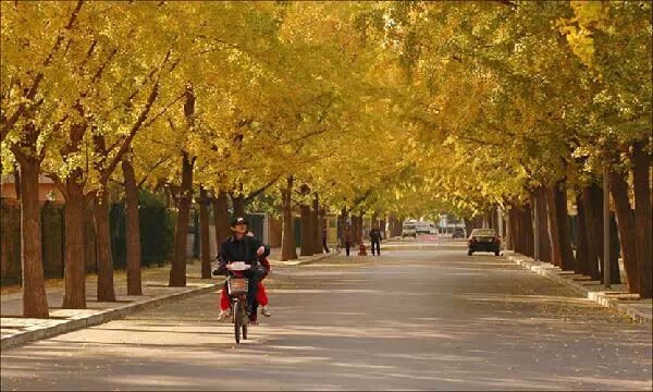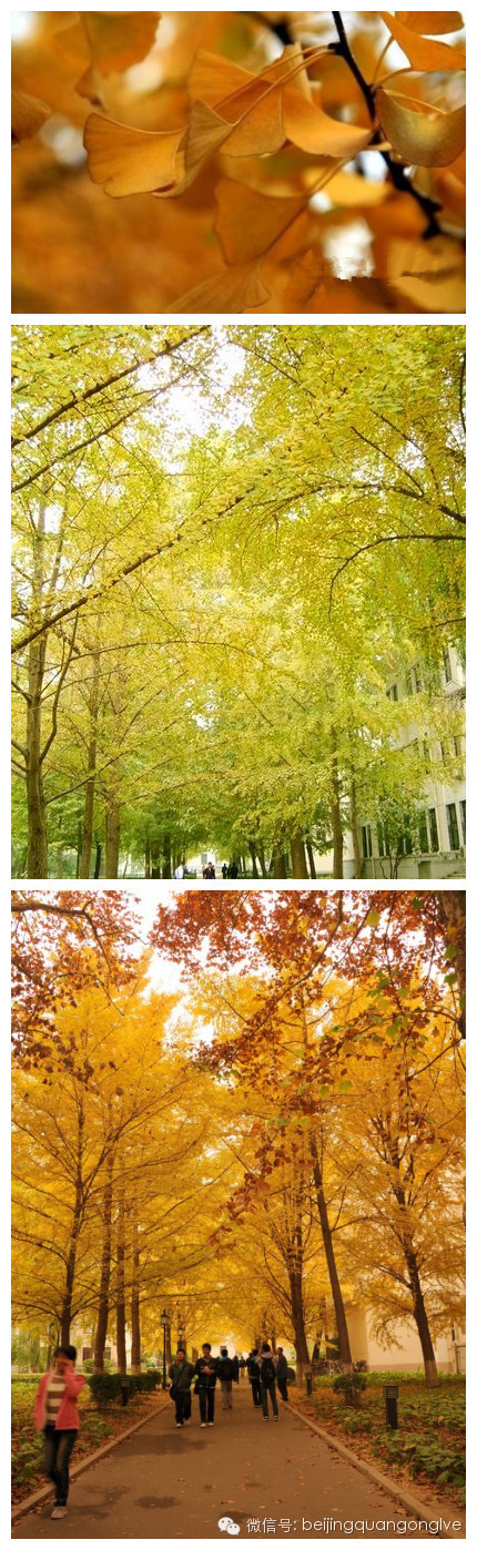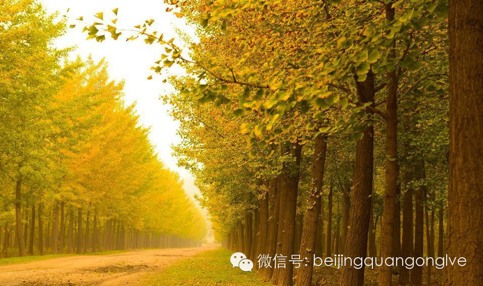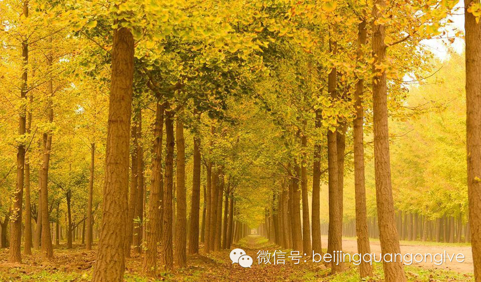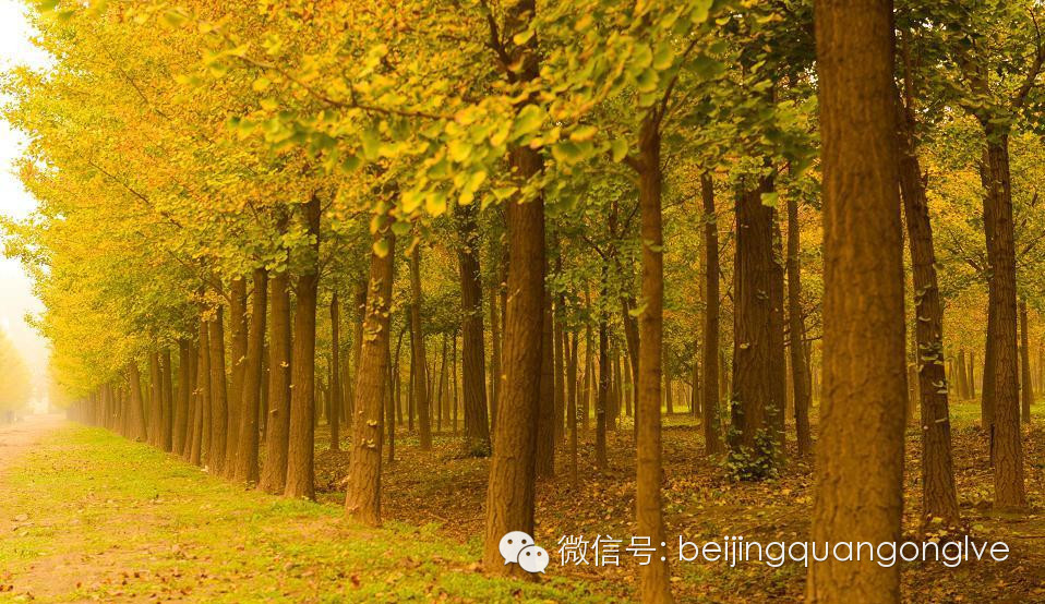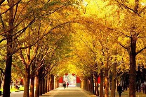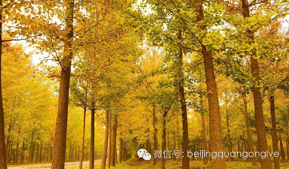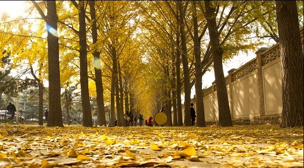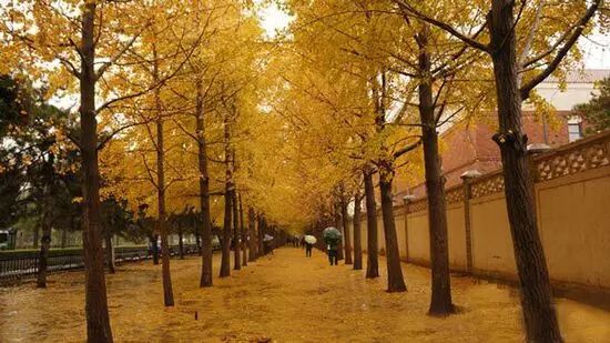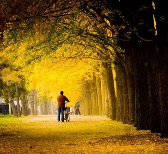 圆明园有一条很长的银杏大道,与夏日荷花齐名。一般人可能坐电车就经过了,只有“懂行”的才会慢慢步行走过那一片秋的金黄。