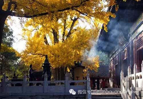 香山最有名的当然是红叶,但其实深藏在香山公园腹地里的银杏也是别有韵味,而且可以看到红叶与金灿灿的黄色银杏叶竞相绚烂的景致。