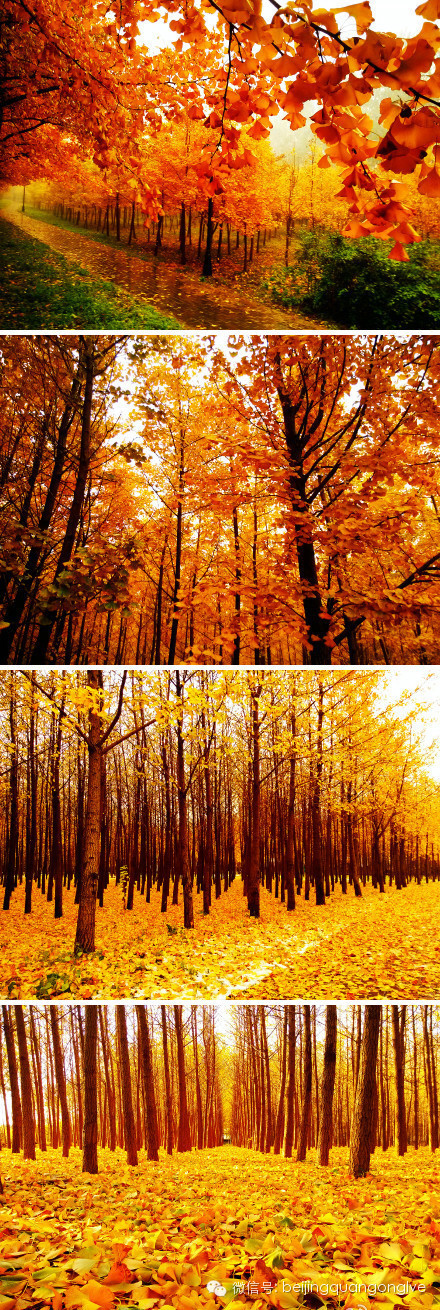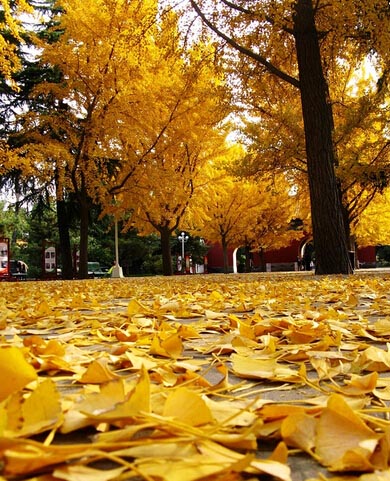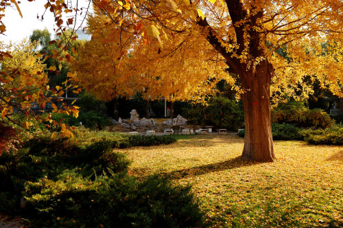 位于北京西郊的香山最有名的自然是红叶了,是我国四大赏枫胜地之一。可是其实香山公园里的也是别有一番韵味,这里的银杏树也是很有些年头了,从香山公园大门进去之后,穿过眼睛湖,沿着湖边小路右拐,即到了公园深处,几棵高大参天的树木马上映入眼帘。黄得亮眼的叶子在周围松树的环绕下显得格外的醒目,一阵微风吹来,飘飘扬扬的落下几片树叶,低头一看,地上早已是金黄一片了。“绚烂到极致”是此刻唯一的感觉。