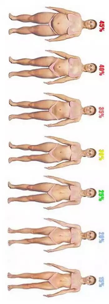 以下是女性不同脂肪百分比水平的全身对比图: