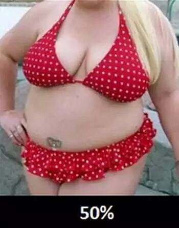50%:属于相当肥胖,一个1米6出头的女性可能重达90公斤!