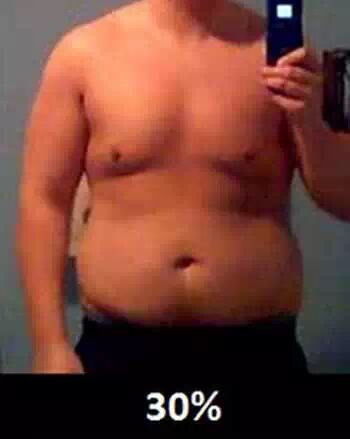 30%:臀部、大腿的脂肪进一步增加,不过依然属于“适中”体型