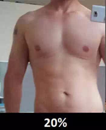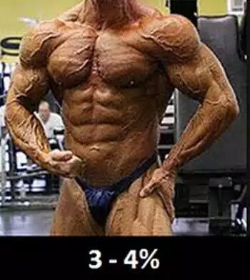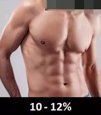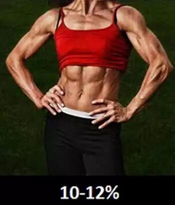 10-12%:女性健美运动员的水平,整体来说女人维持生命最少的身体脂肪是8-10%(因为乳腺和子宫周围需要脂肪来维持生理功能),同样肌肉条纹清晰,但血管不会像男性这么明显。女性如果达到这个水平,可能无法来月经(知道什么叫“女汉子”了吧?)
