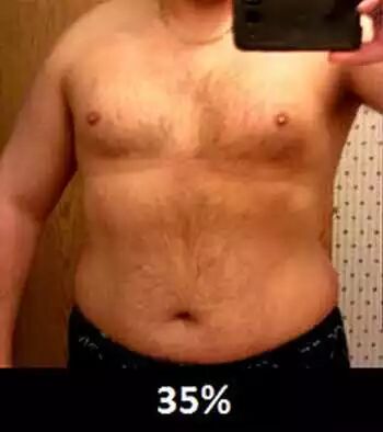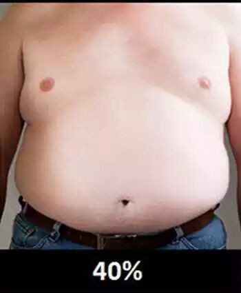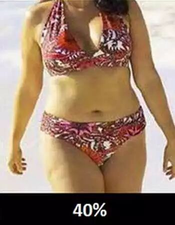 35%:臀部更大,面部和颈部会有更多脂肪,出现“小肚子”,已经可以形容为“丰满”