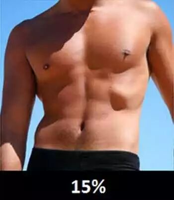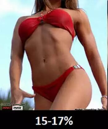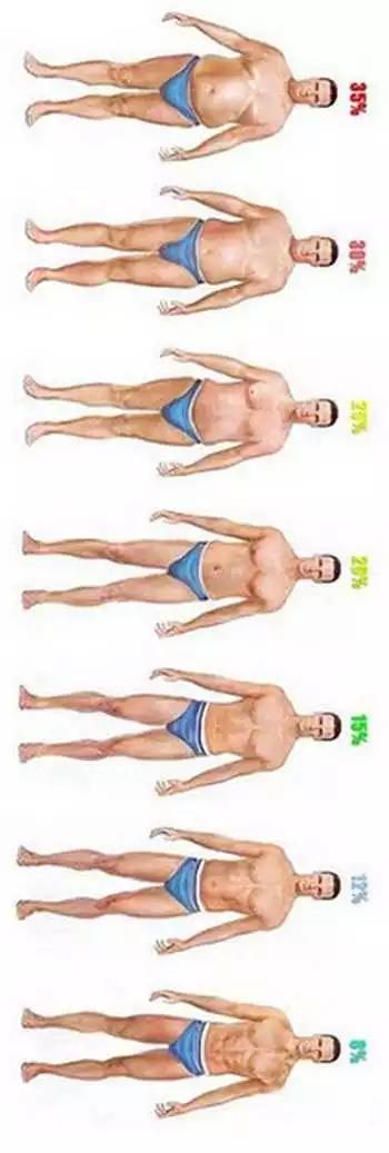 15-17%:经常健身的人或者比基尼模特的水平,部分人可能无法有月经。能看到腹肌