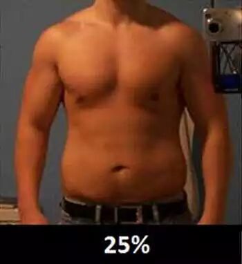 25%:通常所谓的“理想身材”,臀部和大腿脂肪开始增加
