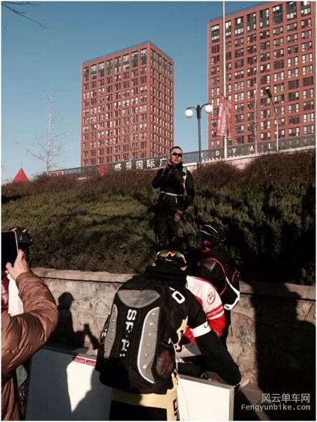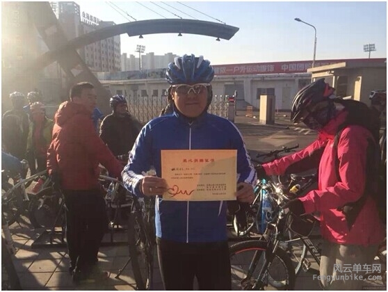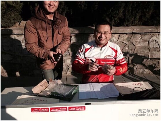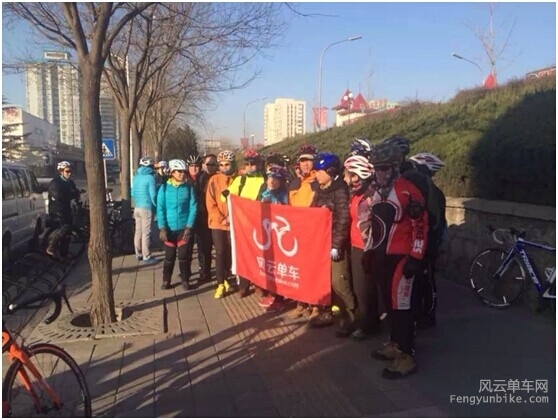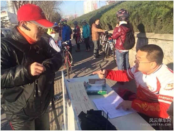 清晨8点15分,两位挑战者约定在复兴门彩虹桥汇合,集合后前往活动出发地石景山体育场北门。 进入12月份,北京的天气愈发阴冷,安西挑战者特地选择了挑3做为活动工具。 913依旧是经典蓝色的TREK2.5 一路巡航25,两人顺利抵达活动地点。现场已经聚集了天南海北的热心骑友,看来寒冷的天气不能阻挡大家公益骑行的热情。 豪客快乐的忙碌中,真心感谢风云提供了这样的活动,能让爱心人士更好的献出绵薄之力。 活动很正规,出发前,成长版主在给大家介绍活动路线和注意事项。