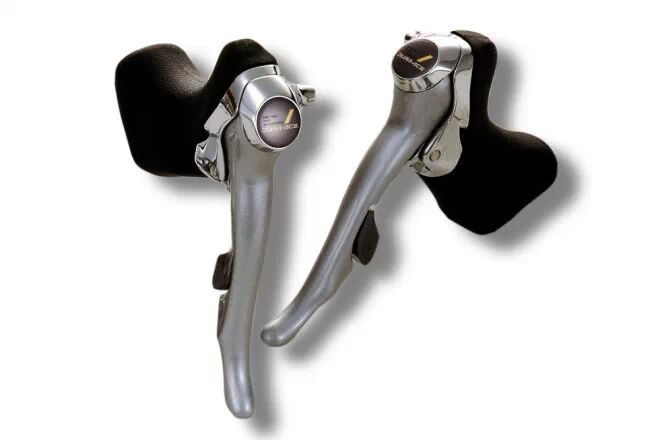 第2名:Shimano刹车变速双控公路手柄 公路车变速手柄从“梁变”到“手变”的改进是公路车乃至于公路自行车运动的巨大飞跃,解放的双手意味着更灵活的骑行姿势和更激烈的骑行节奏,公路自行车运动的面貌因此焕然一新。