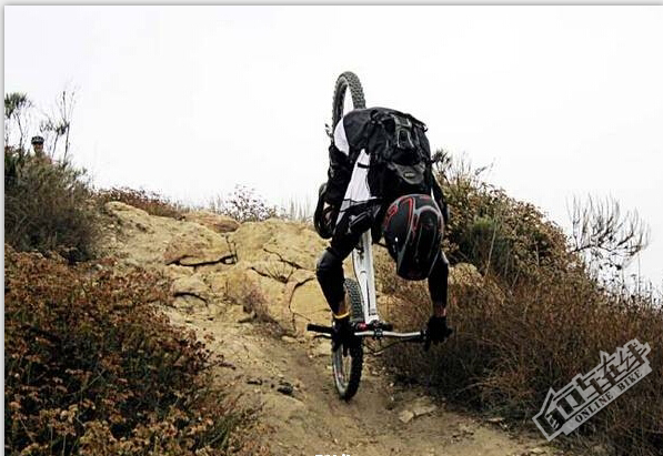 错误的上下坡方式 有些人在骑乘上坡路段时,会站立起来踩踏板。但除非是特别陡的坡段或需要加速冲刺,否则此种姿势应该避免。除了较耗费体力之外,骑乘重心提高造成操控不佳,后轮也容易打滑。正确的方式应为:上坡时,坐姿往前移,上身压低保持重心,以轻齿比踩踏前进。下坡时,身体重心往后移,身体压低,大腿夹紧坐垫。注意控制速度,应采用渐进煞车的方式,严禁紧急煞车。