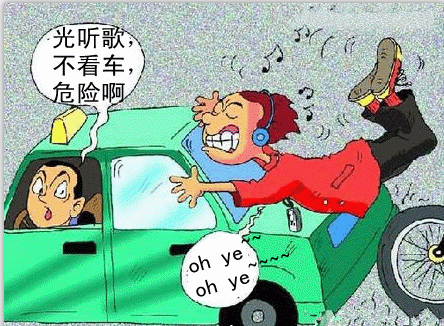 佩戴耳机骑乘 佩戴耳机难以得知外界的讯息,如后方车辆的喇叭声或队友的提醒,耳机线过长也容易造成意外。若想聆听音乐或广播,可以使用扩音器等装置。骑乘时严禁佩戴耳机聆听音乐。