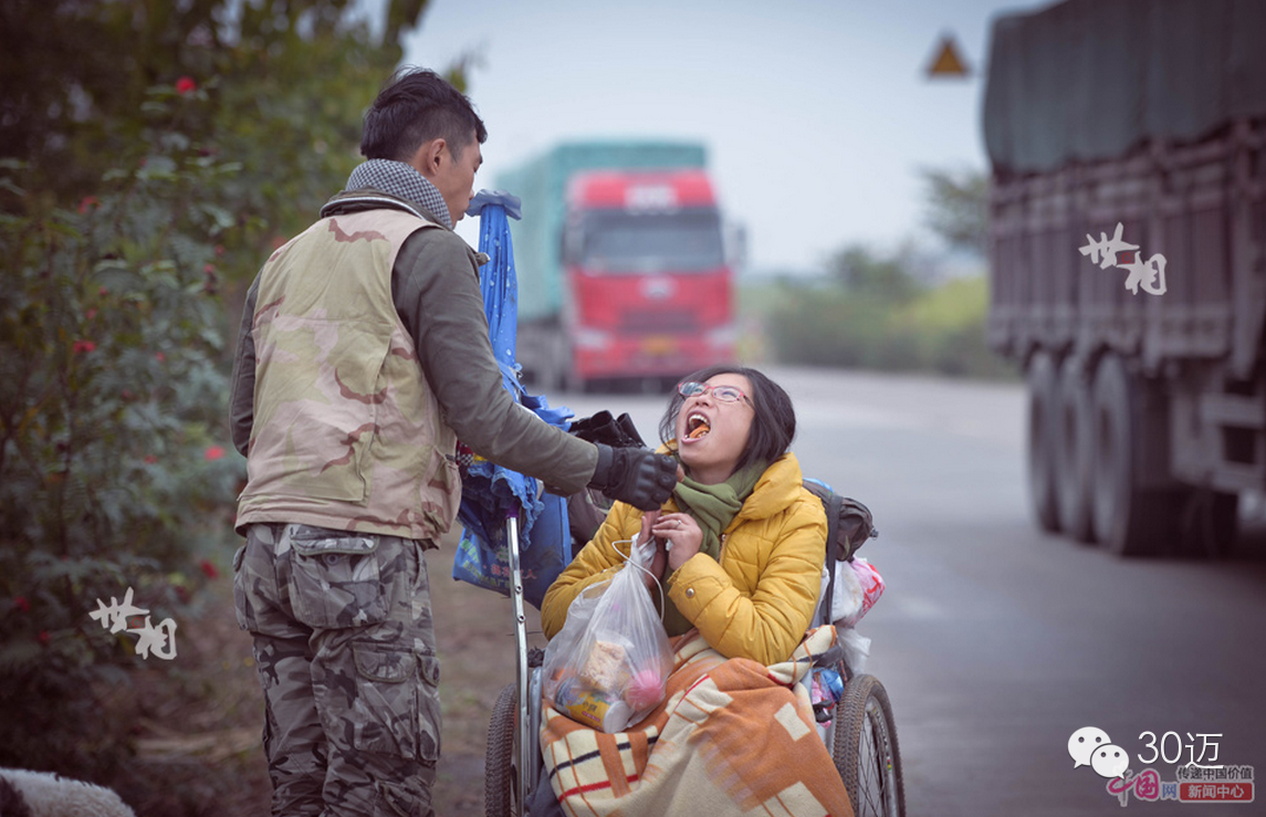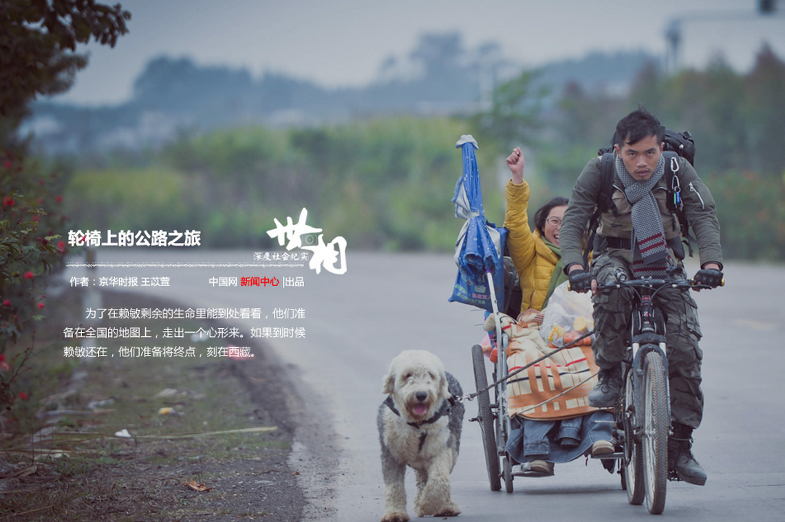 一辆单车、一辆轮椅、一只犬,这样的一个组合已经在路上走了7天,为了在赖敏剩余的生命里能到处看看,他们准备在全国的地图上,走出一个心形来。如果到时候赖敏还在,他们准备将终点,刻在西藏。 多年后的再见 “赖敏乐观向上的心态感染着我,刚开始只是出于同情,后来慢慢地对她产生了感情,赖敏也喜欢上了我,最后,我把她接回了家。”