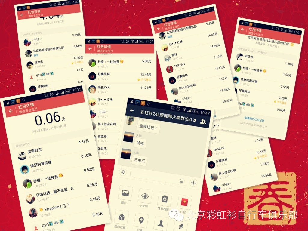 后来的新年成语接龙、接歌活动统统又变成了抢红包游戏。。。于是,红包活动一直持续到初五。。。我们是有多麽的其【jian】乐【qian】融【yan】融【kai】!