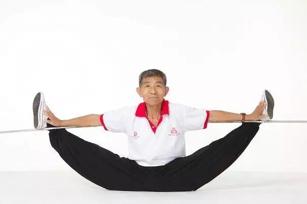他,73岁。他的柔韧超强,有些年轻人都完成不了他的动作。