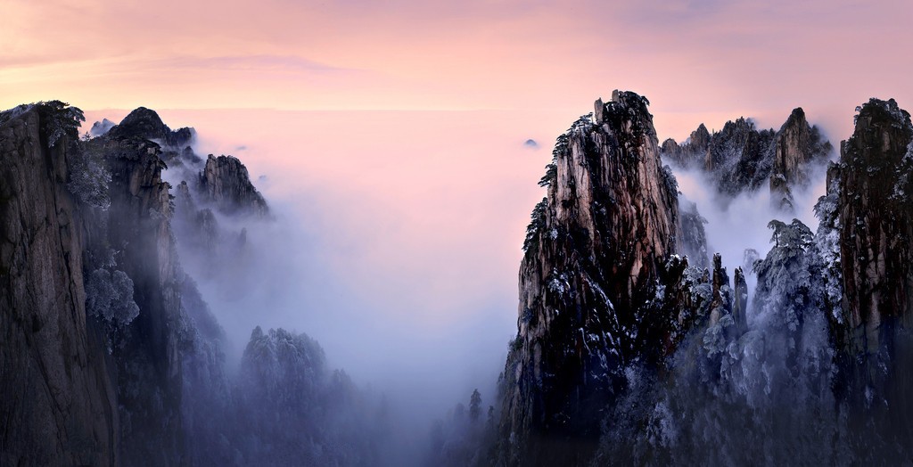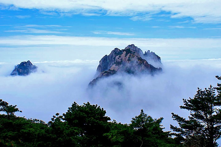 世界自然与文化双重遗产——黄山雄踞风景秀丽的安徽南部,是我国最著名的山岳风景区之一。黄山集名山之长:泰山之雄伟,华山之险峻,衡山之烟云,庐山之飞瀑,雁荡山之巧石,峨眉山之清凉。明代旅行家、地理学家徐霞客两游黄山,赞叹说:“登黄山天下无山,观止矣!”又留“五岳归来不看山,黄山归来不看岳”的美誉。更有“天下第一奇山”之称。可以说无峰不石,无石不松,无松不奇,并以“奇松、怪石、云海、温泉”黄山四绝著称于世。其二湖,三瀑,十六泉,二十四溪相映争辉。春、夏、秋、冬四季景色各异。黄山还兼有“天然动物园和天下植物园”的美称,有植物近1500种,动物500多种。