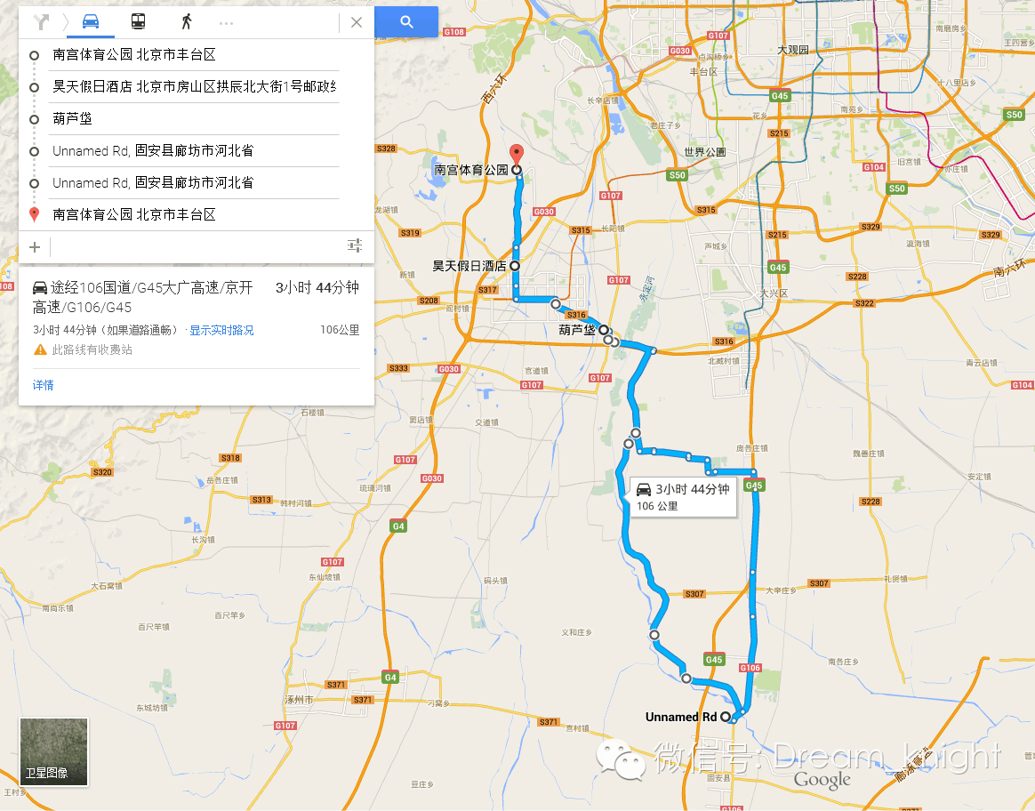 南宫体育公园—昊天假日酒店—大学城—葫芦垡—左堤路—固安自行车公园—大兴薛营—左堤路—葫芦垡—大学城—南宫体育公园