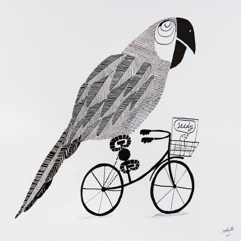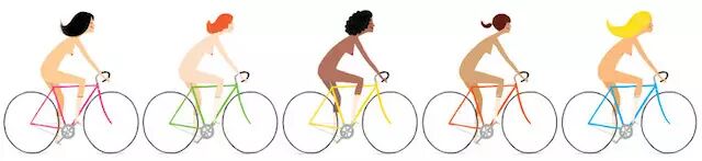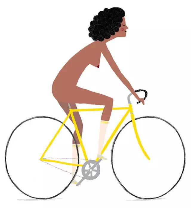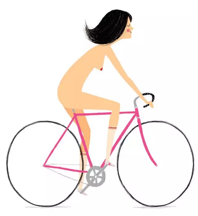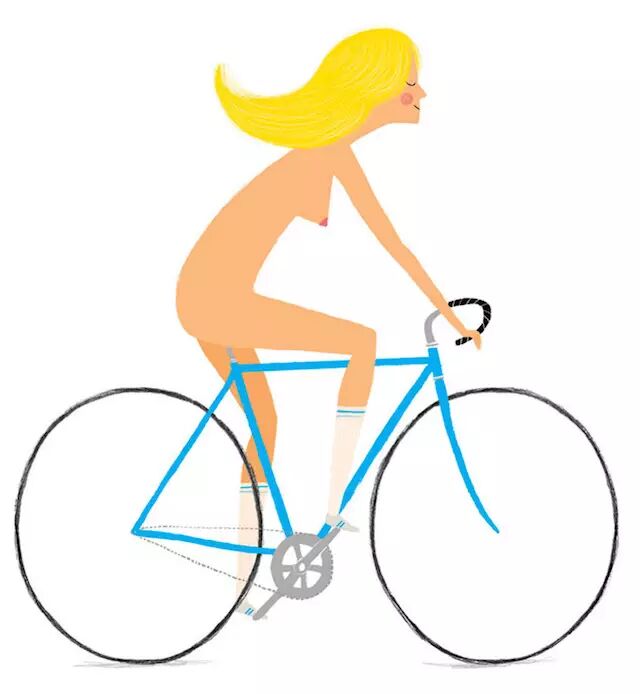 自认为看过不少的单车插画,但Jim Field的这一组“I want to ride my bicycle”还是让我脑洞大开。作为献给伦敦咖啡单车店Look Mum No Hands的作品,这些赤身裸体骑着单车的女人们还真是奇怪。她们的头发、肤色、发型各不相同,车架的颜色都是五颜六色的,惟二的相同点就是——没穿衣服,以及脸上带着一致的微笑。好吧,大概从这招摇过市的自信来看,就多少能解释什么叫做“我要骑车”。想必在上车之前,她们都呐喊过一阵子。反正是好是坏不管,骑自己的车就是了。