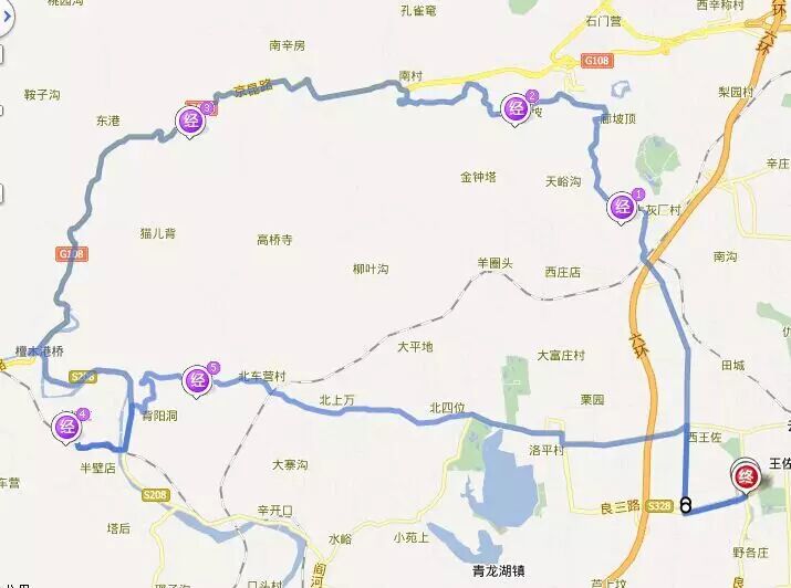 南宫体育公园路口——大灰厂——戒台寺——松树岭——石花洞——北车营——南宫体育公园路口