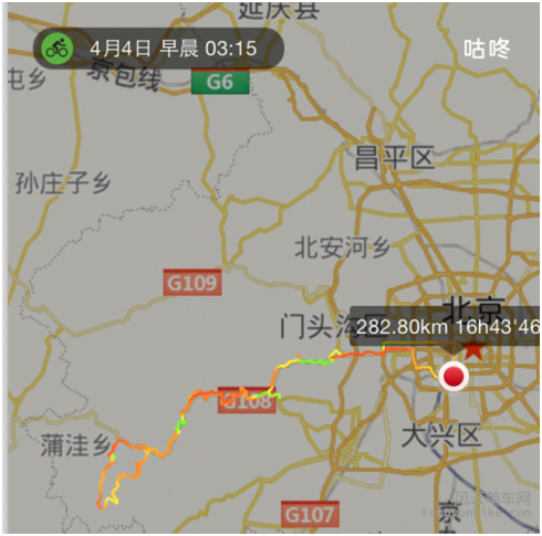2015.04.04清明自虐红井路六石路 --安西 六石路:六渡至石板台村 红井路:红娘口至井儿峪 两条神奇而又久负盛名的路 这两条神奇的路,吸引了我很久很久。是两日拉练游,还是三日休闲游,一直没有想好,路书其实早早就已经规划好了:行者路书编号:241735 4547的累计爬升,让我肝颤。由于报名了4.18的PBP300的活动,于是毅然决定单日完成这两条流弊的线路,而且也只有一天的假期。 原计划车队也组织了这条线路,但是分为了AB队,A队一天,B队两天。 A队:安西、ricky0913、自由、穆张、小战、小高 B队:船长、小崔、海带、猪猪 但是由于个人原因,变成了A/B/C三个队。 A:安西自己。。。。。 B: ricky0913、自由、穆张、小战、小高 C队不变。 头天晚上已经早早准备好了各种装备,但是由于瞎折腾,把山地油碟搞坏了,只能继续骑公路车。 凌晨3点45分,安西单飞小组,已经到达原计划的集合地复兴门,但是其余成员看样子不能按时间到达集合地,清明的凌晨还是很冷的,与其他成员沟通过后,安西决定先飞,顺便探路,其他人员慢慢追赶,没想到最后还是变成了单飞的行动。。。 3点45分,复兴门彩虹桥夜色正浓。安西已经冻成了呆鸟。 5点钟石门营环岛连只鸡都没有。B队据说9点才会在这里集合。 |