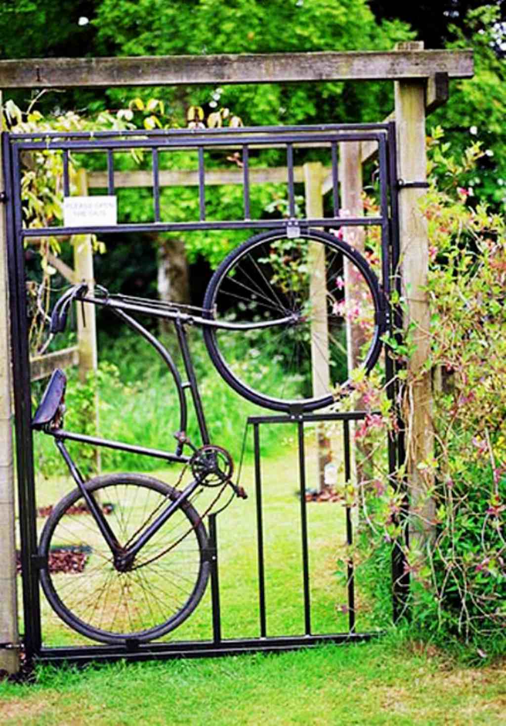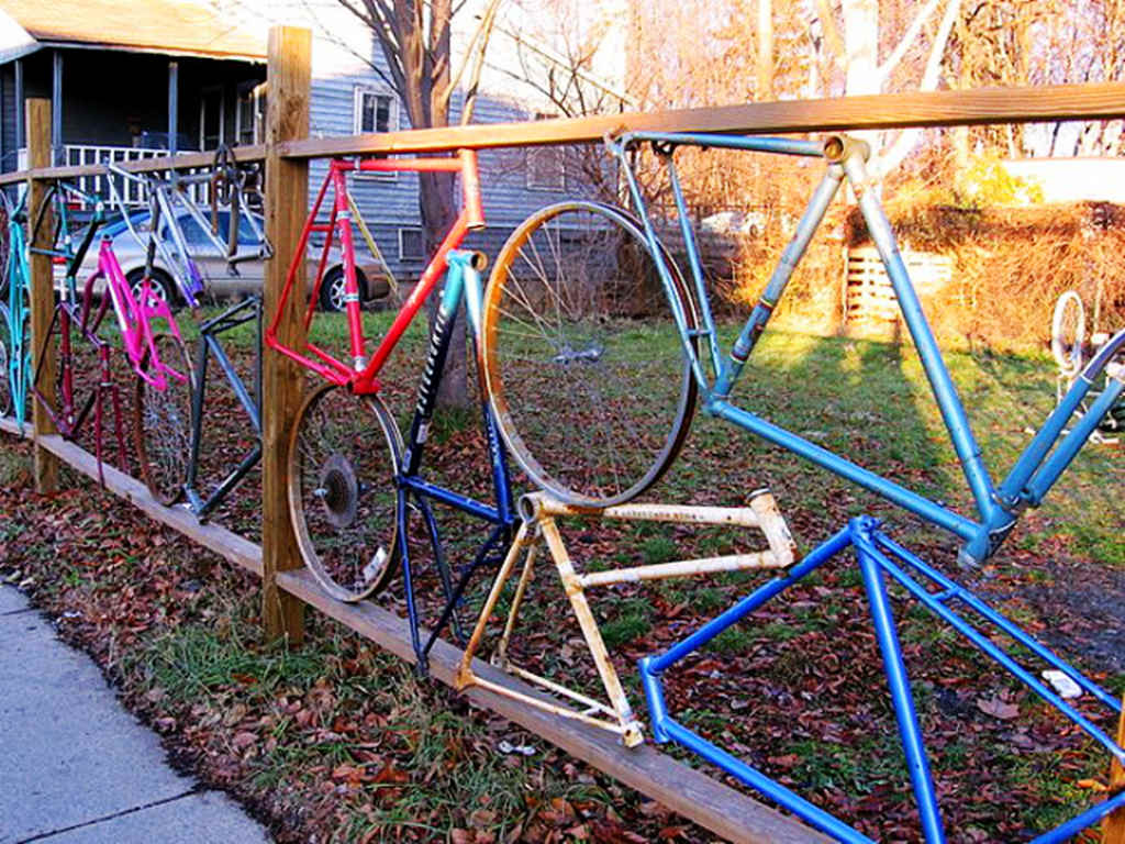 旧自行车商店回收的车架。 比起真的篱笆墙毫不逊色啊...