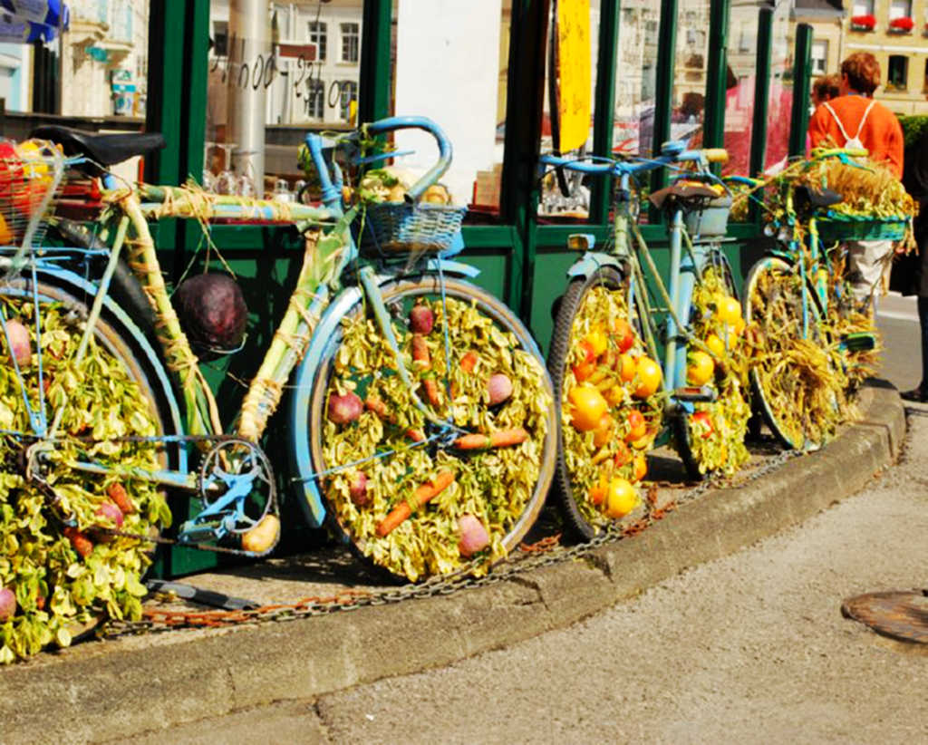 法国St Omer 自行车也能当菜篮子?红红绿绿还挺好看...