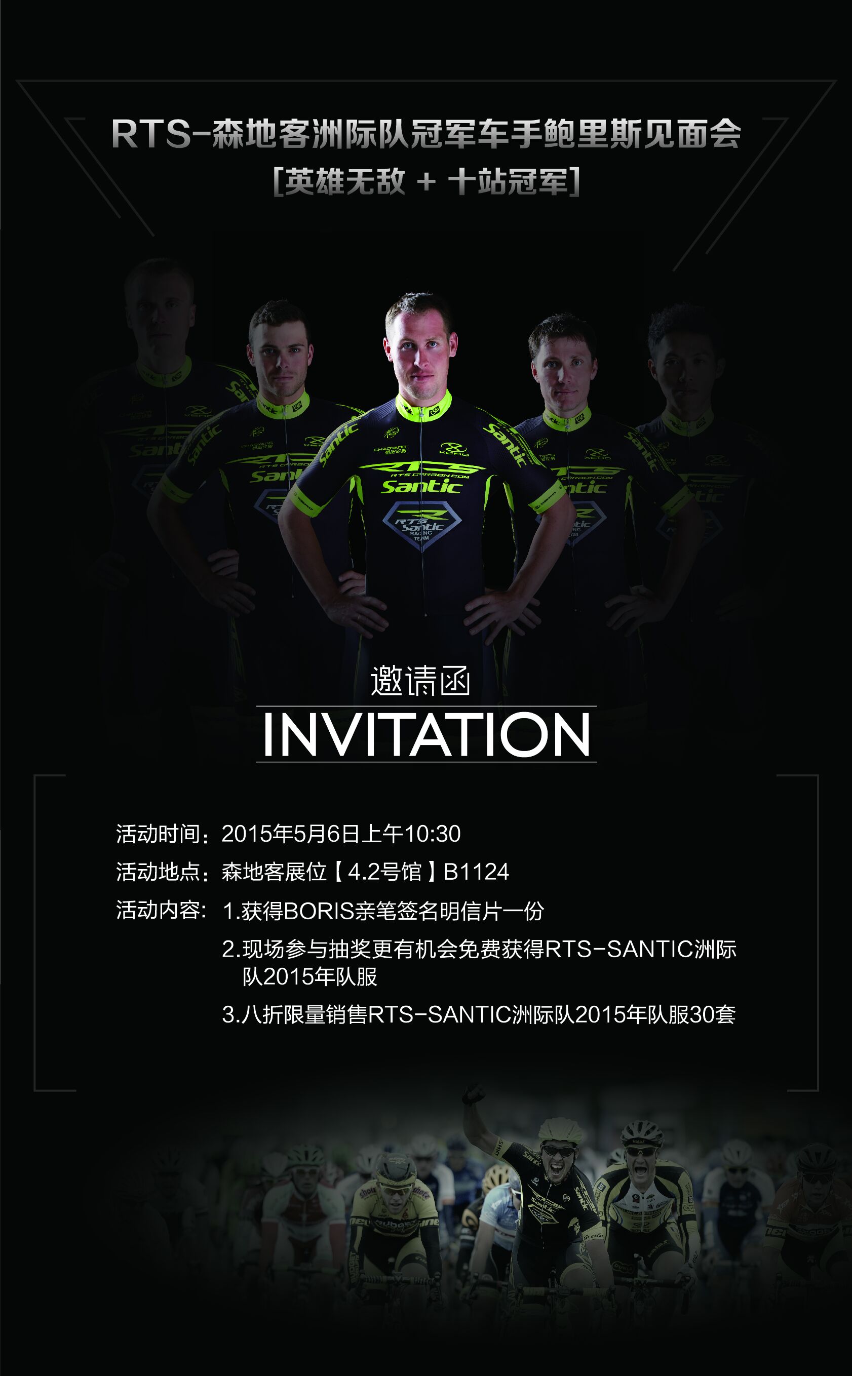 了解更多森地客此次带来的最具创新的产品,感受中国骑行装备领导品牌带来的科技装备。还有RTS-森地客洲际队主将鲍里斯携RTS-森地客中国车队正式发布亮相。更多精彩就在5月6日-9日森地客Santic展位【4.2号馆】B1124。