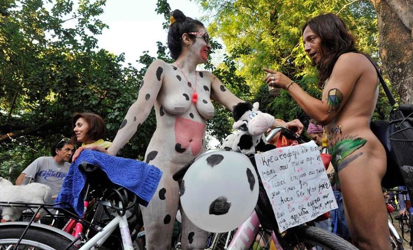 圣路易斯警方试图确保这些骑车者最低限度上遮掩身体,哪怕穿泳衣、系皮带或缠腰布、甚至画上人体彩绘。不过防不胜防。美联社调侃说,警方似乎没发现一名骑车者全身仅戴个帽子,依然招摇过市。