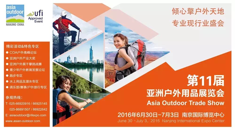 2016年6月30日-7月3日,南京国际博览中心,第11届亚洲户外展将如期而至!